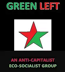 The Green Left is an anti-capitalist and eco-socialist grouping within the Green Party of England and Wales. It seeks to constitute a network for "socialists and other radicals" in the Green Party, as well as "act[ing] as an outreach body that will communicate the party's radical policies to other socialists and anti-capitalists outside the party." It includes some prominent members of the Green Party of England and Wales, and held its first meeting on 4 June 2006.[1][2] Green Left members were early supporters of an "ecosocialist international", such as the Ecosocialist International Network (EIN) Green Left publishes the 'Watermelon' a publication promoting eco-socialist policies to Green Party members on an array of issues. Green Left has a social media presence including on Twitter and Facebook. The Facebook site is very busy and has 9,000 members. Green Left engages the wider left with the aim to build for real change with eco-socialist policies and including just transition and supporting workers struggles. Green Left is very supportive of the Green Party Trade Union Group.[3][4]