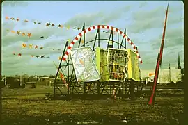 ![]() Green Lightning, 1984. Steel, LEXAN, tin, transformers, neon, electricity, wire, animators and concrete. | |