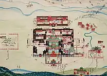 The old city of Ikh Khüree, once it was set up as a permanent capital, had a number of palaces and noble residences in an area called Öndgiin sürgiin nutag. The Bogd Khan had four main imperial residences, which were located between the Middle (Dund gol) and Tuul rivers. The main residence was the Yellow Palace (ᠰᠢᠷᠠ ᠣᠷᠳᠣᠨ Shar ordon) in the centre. The summer palace was called Erdmiin dalai buyan chuulgan süm or Bogd khaanii serüün ord. Other palaces were the White Palace (Tsagaan süm, or Gьngaa dejidlin), and the Pandelin Palace (also called Naro Kha Chod süm), which was situated on the left bank of the Tuul River. Some of the palaces were also used for religious purposes.[3]