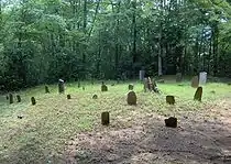 The Greenbrier area contains one of the park's largest concentrations of chimney falls and rock walls, which mark the sites of former homesteads.[34] While most structures were removed in the 1930s, a few are preserved by the park service as representative of pioneer life in Appalachia. The John Messer Barn in Greenbrier Cove and the Tyson McCarter Place along Webb Creek are listed on the National Register of Historic Places, and the Smoky Mountain Hiking Club Cabin has been deemed eligible for the National Register by the Tennessee Historical Commission. Plemmons Cemetery, located near the junction of Middle Fork and Porters Creek, is one of the largest cemeteries found within park boundaries.