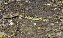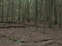 Greenbrier is underlain by a Precambrian metamorphic rock formation of the Ocoee Supergroup known as Roaring Fork Sandstone.[1] This rock type, created from ancient ocean sediments 750 million years ago, dominates the mid-level elevations in the north-central Smokies. As the elevation increases to the south, a thrust fault known as the Greenbrier Fault separates the Roaring Fork sandstone from Thunderhead sandstone and Anakeesta Formation, both of which are common along the Smokies crest. To the north, as the land flattens out (near the park boundary), another thrust fault, the Gatlinburg Fault, separates the Roaring Fork formation from a layer of siltstone, which underlies the foothills around Emert's Cove.[2]