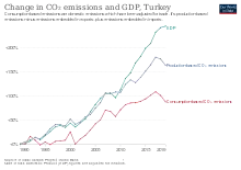 On average the consumption-based CO2 emissions of one of the richest 10% of people in Turkey is more than double that of someone in the rest of the population,[211] as richer people tend to fly more and buy gasoline-fuelled SUVs.[212] Nevertheless 2019 studies disagree on whether Turkey's high income inequality causes higher CO2 emissions.[213][214]