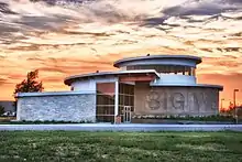 The adjacent museum displayed a 1000-pound pallasite meteorite until the museum fell down around the meteorite during the 2007 tornado that destroyed the city. The meteorite was found in the rubble of the museum and moved to a temporary home in Hays, Kansas while Greensburg was rebuilding.[34][35] In May 2012, the new Big Well Museum and Visitor Information Center opened featuring exhibits about the history of Greensburg, The Big Well, the 2007 tornado, the rebuilding process, and the meteorite.