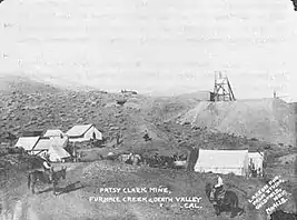 Furnace[5] was a tent city located between three and four miles west of Greenwater. Patrick Clark founded the Furnace Creek Copper Company at Furnace.[6] Furnace was a boomtown by 1905, but deserted by 1907.[6] The Furnace post office operated from 1907 to 1908.[2] The postmaster was Sidney Norman, but the USPS has no evidence that the post office was ever in operation.[4] Sidney Norman also operated the Furnace Townsite Co. out of a tent.[7] The residents of Furnace abandoned the site and moved to Greenwater.[4]