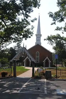 Greenwich Presbyterian Church and Cemetery is a historic Presbyterian church and cemetery located at 9510 Burwell Road in Greenwich, Prince William County, Virginia. It was started in 1859, and is a one-story, gable-roofed brick church building in the Gothic Revival style. It features two pointed-arched front doors, decorative buttresses on the side walls, and large, pointed, arched windows on the front and side walls. It has a wooden church tower with a louvred belfry and a shingle-covered spire topped by a weathervane. The adjacent cemetery has at least 100 headstones and includes the graves of several American Civil War soldiers, including Captain Bradford Smith Hoskins, a colorful Englishman who rode with Colonel John S. Mosby.[3]