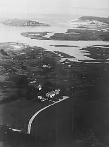 Greenwood Farm is located on a neck of land in the north part of Ipswich, Massachusetts. The neck, called Great Neck and later Jeffreys Neck, is about 350 acres and is surrounded on three sides by the Eagle Hill River, the Ipswich River, and Plum Island Sound.[2] Prior to its settlement by European colonists, the land was a homeland to the Pawtucket people who called the local village Agawam, which is translated from Algonquin as "beyond" (aga) "the marsh" (wam).[3]