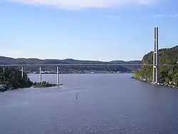 Grenland Bridge (in Norwegian Grenlandsbrua) is Norway's highest cable-stayed bridge with a tower height of 168 metres (551 ft). The bridge, which opened in 1996, is on route E18. It crosses the Frierfjord, a fjord which separates the municipalities of Porsgrunn and Bamble in Vestfold og Telemark county. When built, it replaced Brevik Bridge (Breviksbrua) as the primary route across the fjord.[2][3]