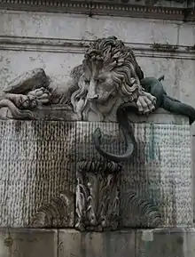 Next to the Saint-Laurent Bridge in the Place de la Cymaise, there is a fountain which represents the struggle against the waters. It was built by Pierre-Victor Sappey in 1840. The sculpture consists of a lion and a snake. Next to the fountain is written an Arpitan proverb: "La serpen et lo dragon mettront Grenoblo en savon" which means "the snake and the dragon will destroy Grenoble". The serpent symbolizes the Isère and the Dragon symbolizes the Drac. On the statue there is a lion's head instead of a dragon.