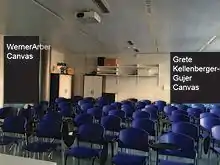 In 1979, the Faculty of Medicine of the University of Geneva awarded Grete Kellenberger-Gujer the International Prize Nessim-Habif. An honoris causa doctorate for Grete-Kellenberger was discussed at the University of Geneva, but was never awarded.[1] In 2009, three portraits of Grete Kellenberger-Gujer were created by the Roger Pfund studio and displayed as part of an exhibit commemorating representative individuals from the University of Geneva as part of the university's 450th anniversary.[24] Grete's portrait is hung since 2010 in the University's Department of Molecular Biology seminar room, across from the portrait of Werner Arber. In September 2016, the Campus magazine of the University of Geneva published an article[25] on the story of Grete-Kellenberger-Gujer described in,[1] without including any of the sociological considerations and cultural and academic gender-bias facts explored in the article.[1]