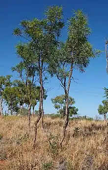 Caustic bush grows in shrubland or woodland, often in seasonally wet areas, and is found in the northern and western Kimberley region of Western Australia, the northern part of the Northern Territory, and north of Cloncurry, Chillagoe and Mareeba in northern Queensland.[2][3][4]