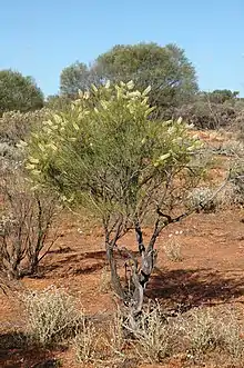 Subspecies cullenii grows in mallee near Laverton and Cosmo Newberry in the Avon Wheatbelt and Great Victoria Desert bioregions, subspecies funicularis in open shrubland between Morawa, Mingenew and Ballidu in the Avon Wheatbelt, Geraldton Sandplains and Yalgoo bioregions, and subsp. obliquistigma is widespread from the lower Murchison River to Mount Magnet and Bullfinch in the Avon Wheatbelt, Coolgardie, Geraldton Sandplains, Murchison and Yalgoo bioregions where it is found in open shrubland.[8][9][11][12][14][15]