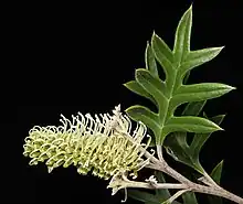 The hybrid cultivar Grevillea 'Poorinda Anticipation' is a cross between G. longifolia and G. willisii.[9] Grevillea 'Poorinda Royal Mantle' is a vigorous cultivar that was bred by Victorian plantsman Leo Hodge and registered in 1978; it is thought to be a hybrid between G. willisii and G laurifolia.[10]