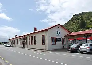 The first station in Greymouth was opened in 1876, as the terminus of a railway between Greymouth and the coalmine at Brunner.[1][2] As the railway system of the West Coast grew, the station in Greymouth became the centre of the region's railway network, and was of particular importance to goods traffic from the region's primary industries as it served the main port in the area. As such, the station became unsuitable for the amount of traffic it was handling, and it was rebuilt in the mid-1890s, with the new station opening in 1897.[1] Despite the rebuild, the station was still considered inadequate, and extra facilities were added at the station several times in the early 1900s.[1][3] After the Otira Tunnel opened linking the West Coast and Canterbury in 1923, passenger traffic further increased with the introduction of services to Christchurch; a footbridge was erected to handle the increased usage.[4] During the later part of the 20th century, traffic declined significantly, as both passengers and freight shifted to road transport.[1] The station was modernised in 1998, and several outbuildings were removed.[3]