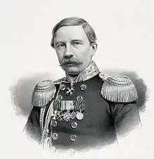 Grigory Ivanovich Butakov (Russian: Григорий Иванович Бутаков) (9 October 1820 – 31 May 1882)[1] was a Russian admiral who fought in the Crimean War. Butakov is widely credited as being the father of steam-powered ship tactics during the 19th century. He was involved in the first battles of the Crimean War, which includes the first sea battles involving steam-powered ships. Butakov wrote of his experiences in his book: New Principles of Steamboat Tactics (1863), which won him the Demidov Prize. In 1881 Butakov assumed the role of Commander-in-Chief of the Port of St. Petersburg. He was also made a member of the State Council in March 1882.[2] Shortly after gaining both titles however, Butakov fell seriously ill, and died on the 31 May 1882, aged 62. The minor planet 4936 Butakov was named in his memory.[3]