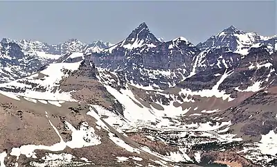 Red Crow Mountain (lower left), and Mount Rockwell (upper right).
