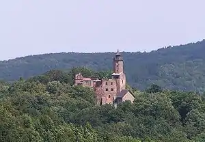 Grodno Castle (German: Kynsburg) is a castle located in the southern parts of the Wałbrzych Mountains, on the Choina Mountain (450 metres), standing to the left of the river Bystrzyca. The valley of this river, formerly known as the Silesian Valley (Śląska Dolina, Polish), creates a natural boundary between the Owl Mountains and to the west of it the Wałbrzych Mountains. The castle is located in Zagórze Śląskie (11 km east of Wałbrzych), Lower Silesian Voivodeship in Poland.[1]