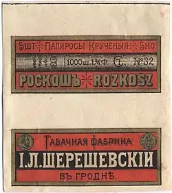 Tobacco factory was established in Grodno in 1861 by merchants Leyba Shereshevsky and Abram Gordon. The factory became one of the largest in the Russian empire; it continued production in Poland and in the Soviet Union. In 2007, it was organized as JSC, but it continues to be state-owned.[3][4]