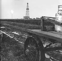 Natural gas was initially mainly a by-product of petroleum, which was more economically attractive. In 1948 the Nederlandse Aardolie Maatschappij (NAM), jointly owned by Shell and Esso, discovered a natural gas field in the Netherlands for the first time near Coevorden. This gave rise to the expectation that more natural gas fields could be found in the Netherlands. In the north and east of the country they searched for gas fields, including near the later Groningen gas field. In 1954 and 1955 drilling at Haren and Vlagtwedde yielded nothing.[3] On October 24, 1955, when seeking oil at Thesinge, natural gas was found in the Zechstein formation, but they drilled 40 to 50 meters too little to discover the Groningen gas field.[4]