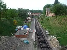 In 1996 the Spa Valley Railway acquired the trackbed between Tunbridge Wells West and Birchden Jn and, after much hard work, restored a public service from Tunbridge Wells West to Groombridge in August 1997.[16] As the original Groombridge station is now a private residence and the old ticket offices are now offices for a local financial adviser, it was necessary to build a new station on the opposite side of the road bridge with access via the old main station platform which has been extended to the new station. The island platform has been demolished and houses have been built on part of the trackbed requiring the new single track to curve along the trackbed of the old up loop line into the new station.[17]