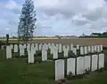Grootebeek British Cemetery is a Commonwealth War Graves Commission (CWGC) burial ground for the dead of the Western Front of the First and Second World War. It is located near Reningelst in the municipality of Poperinge in western Belgium. The cemetery is surrounded by farmland and can only be reached via a 100-metre grassed path which is not suitable for vehicles.