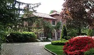 Grosse Pointe has a significant collection of historic architecture as well as some newer mansions. Albert Kahn designed the Edsel & Eleanor Ford House (1927) at 1100 Lakeshore Dr. in Grosse Pointe.[6] Rose Terrace (1934–1976), the mansion of Anna Dodge, once stood at 12 Lakeshore Dr. in Grosse Pointe. Designed by Horace Trumbauer as a Louis XV styled château, Rose Terrace was an enlarged version of the firm's Miramar in Newport, Rhode Island.[7] A developer, the highest bidder for Rose Terrace, demolished it in 1976 to create an upscale neighborhood. This gave a renewed sense of urgency to preservationists.[7] The Dodge Collection from Rose Terrace may be viewed at the Detroit Institute of Arts. The Italian Renaissance styled Russell A. Alger House (1910), at 32 Lakeshore Dr., by architect Charles A. Platt serves as the Grosse Pointe War Memorial.[8] Many noted architects designed works in Grosse Pointe including Albert Kahn, Marcel Breuer, Marcus Burrowes, Chittendon and Kotting, Crombie & Stanton, Wallace Frost, Robert O. Derrick, John M. Donaldson, Louis Kamper, August Geiger, William Kessler, Hugh T. Keyes, George D. Mason, Charles A. Platt, Leonard Willeke, Eliel and Eero Saarinen, Field, Hinchman, and Smith, William Buck Stratton, and Minoru Yamasaki. Included below are examples of some of Grosse Pointe's many historic structures.
