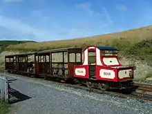 The original line had no goods vehicles. At least one of the original four-wheeled toastrack coaches had its bodywork removed and was used to carry stock for the Headland Cafe below the line's later terminus.