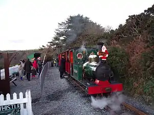 The first services ever operated on the newly restored railway were the Santa Trains in 1983 which have since proved to be the highlight of the line's calendar; they began life as one day of operation the weekend before Christmas Day but today these extend to two weekends of trains, which are the railway's busiest period of year, culminating in the popular Mince Pie Trains which are a regular fixture each Boxing Day when many locals visit the line for a return journey and a seasonal drink and mince pie. The station at Lhen Coan is transformed into a grotto area for these services and the volunteers spend many hours preparing the site for the festive services. Until the arrival of Annie, one of the railway's two diesel locomotives was renamed as "Blitzen" for the day, originally the traditional name of "Rudolph" was applied but this was changed in 1997 following requests. The services are now annually hauled by Sea Lion and Annie. Such is the continued success of these seasonal services that the railway introduced online pre-booking in 2010 for the first time, and now operate them over four days during the festive period.