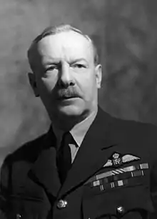 Cheshire did what he could to convey to the men being trained how what was being taught at the OCU would translate to saving lives once they began flying in earnest. In April he was awarded a bar to his DSO.[49] And yet the time was a personal crisis for Cheshire. He longed to get back to operational flying but could not, as he could not ask Air Vice-Marshal Carr to reverse his promotion to Group Captain, and with such a rank no flying position was available.[50] A possible 'out' arose when the AOC of the PFF, Don Bennett, arrived at his airfield to tour his station. Cheshire approached Bennett and asked permission to transfer to the Pathfinder Force. Bennett was not receptive. He replied that at present no jobs were available. Regardless, he was not sure if Cheshire would be suitable and a trial would be necessary.[23][51] Cheshire was not pleased, and said so. It is not known why Bennett did not want Cheshire in the Pathfinder Force. It was not the first time Bennett had passed on Cheshire. Bennett's primary recruiting officer, Hamish Mahaddie, found it a mystery. Mahaddie said "Chesh was the only person I selected for training with the Pathfinder Force that Bennett vetoed. I was never able to establish why."[52] In the end Cheshire viewed the refusal as a blessing in disguise. "He did me a good turn, because I got something better."[23]