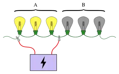 A familiar example of group testing involves a string of light bulbs connected in series, where exactly one of the bulbs is known to be broken. The objective is to find the broken bulb using the smallest number of tests (where a test is when some of the bulbs are connected to a power supply). A simple approach is to test each bulb individually. However, when there are a large number of bulbs it would be much more efficient to pool the bulbs into groups. For example, by connecting the first half of the bulbs at once, it can be determined which half the broken bulb is in, ruling out half of the bulbs in just one test.