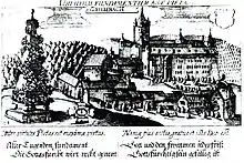 Dhaun Waldgravial-Rhinegravial rule ended in 1574 when the brothers split their father’s inheritance and Johann Christoph moved his residence to Grumbach, thereby founding the Rhinegraves at Grumbach, a noble house that lasted until the fall of the Holy Roman Empire. One peculiarity was the village’s Imperial immediacy and Imperial Statehood, which gave Grumbach a seat and a vote at the Imperial Diet (Reichstag), which supposedly likewise lasted until the Empire’s downfall; this was unique among places now within the Kusel district, and was the result of a 1475 Imperial edict raising the Dhaun-Grumbach line to Imperial Counts. In this time, an administrative structure began to form in which Amt and state administration, the latter in the form of the chancellery, each had its seat in Grumbach. This structure was supposedly preserved well beyond feudal times, characterizing the village in increasing measure until in the course of administrative restructuring in Rhineland-Palatinate in 1969-1972 it abruptly met its end.[3]