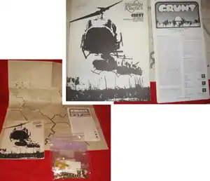 Grunt is a 2-player wargame that simulates non-urban squad- or platoon-level combat between American forces and Viet Cong (VC) guerrilla forces during the period of American involvement in the Vietnam War. The American player must deploy forces to search the map for caches of equipment and food. The VC player tries to cause unacceptable American casualties.[1] The game comes with three scenarios, all only 10 turns long.