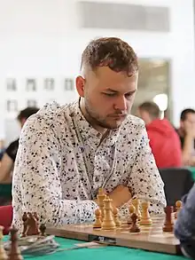 Grzegorz Nasuta represent Poland at European Youth Chess Championships in various age groups three times (2007, 2008, 2013), World Youth Chess Championships (U14 - 2010, U16 - 2012, U18 - 2014, 7th place), U20 World Junior Chess Championship (2016 - 8th place[10]) and World Youth U16 Chess Olympiad (2012 - 9th place[11]). Grzegorz Nasuta is individual and team academic chess vice-champion of the world (Brazil 2018). He is the winner of the Kętrzyn Chess Festival (Kętrzyn 2011) and the memorial Ludwik Zamenhof (Białystok 2012), winner of the 2nd place (behind Patryk Łagowski) in Międzyzdroje (2012). Grzegorz Nasuta is silver medalist of the European U18 Team Chess Championship in Iași in 2014.[12] In 2014, he won Polish Junior Chess Team Championship representing the chess club MUKS "Stoczek 45" Białystok.[13]