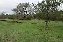 Circle A is the largest guachimonton at Loma Alta with an overall diameter of 80 meters and has eight platforms. Circle A dates from 60 BCE to 15 CE.[1] Only a portion of Circle A was excavated and restored because part of the structure is on private property outside the archaeological site boundaries. One of Circle A's platforms forms the end platform for Loma Alta's ball court. Another platform is shared between Circles A and B. Circle A is somewhat lopsided, possibly because of constructing the guachimonton after the ball court on the narrow hilltop ridge.