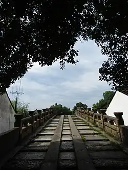 The original bridge dates back to 1097, during the ruling of Emperor Zhezong of the Northern Song dynasty (960–1279), and was rebuilt between 1574 and 1575, during the reign of Wanli Emperor of the Ming dynasty (1368–1644).[2] On 6 May 2013, it was listed among the seventh batch of "Major National Historical and Cultural Sites in Zhejiang" by the State Council of China.[3]