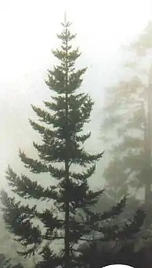 Abies guatemalensis, the Guatemalan fir or pinabete, is an evergreen tree native to Central America and is the southernmost member of the genus Abies being spread to the south lower than 14° N.[3] Its range is from southern (less from western and central) Mexico in the north to Honduras and El Salvador in the south. It is a warm-loving and moisture-loving tree of the tropical mountain coniferous and mixed cloud forests of these countries. The Guatemalan fir is an almost completely non-frost-resistant tree. Due to logging and loss of habitat, the tree is considered threatened and is protected in CITES Appendix I.