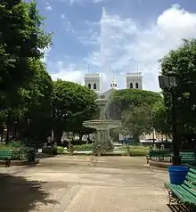 The first nickname of the city was Ciudad del Guamaní ("city of the Guamaní [River]") after the river that crosses the municipality. The name of this river might be related to the name Guayama, and it has been important to the city since its early founding.[7] A more modern and more popular nickname for the city is Pueblo de los brujos ("town of witches" or "town of warlocks") or Pueblo brujo ("witch town"). This nickname traces its origins to a popular story that tells that residents of the city would bring a kind of leaf called hoja bruja ("witch leaf") to baseball games to "scare" the opposing team by pretending to cast spells on them. The town's baseball team then adopted the hoja bruja as their symbol.[6] Another story tells that the nickname comes from a legendary baseball player from the city's local team, Moncho El Brujo, who according to legend owed his success as a pitcher to witchcraft.[8] Regardless of the origin of the nickname, residents of Guayama are often called brujos and their basketball team now carries the name Brujos de Guayama ("Guayama Warlocks").[9]