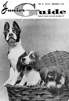 The magazine was announced in an ad in the Youth's Instructor in 1953 promising a magazine "Packed with stories, pictures, games, puzzles, camp craft, Junior Sabbath School lessons, and interesting Pathfinder activity"[1] in a 16-page weekly publication. A contest to decide the name of the magazine was advertised in the Youth's Instructor magazine and drew 16,000 entries. Of those entries 225 suggested Junior Guide which became the original name of the magazine.