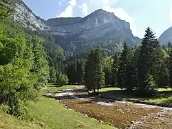 The Guiers Vif (French pronunciation: [ɡje vif], literally live Guiers) is a river in Auvergne-Rhône-Alpes in eastern France.[1] It is located in the Regional Natural Park of Chartreuse, on the border between the municipalities of Saint-Pierre-d'Entremont (Isère) and Saint-Pierre-d'Entremont (Savoie). Its source is in the Cirque de Saint-Même. It flows towards the northwest. For most of its course, the river forms the border between the departments of Isère and Savoie. Near the communes of Entre-deux-Guiers and Les Echelles, it ends after 16.9 km (10.5 mi) as a right tributary of the Guiers.[2]