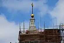 A time ball, a mechanism which enables navigators aboard ships to verify the setting of their marine chronometers, was installed at the top of the clock tower when it was built.[5] The guildhall time ball is believed to be the last to have been installed in the UK and also the highest to have been installed the UK.[6] The building was damaged in bombing in May 1941 during the Hull Blitz of the Second World War.[7][8]
