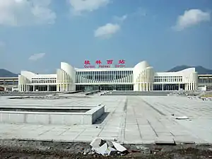 Guilin West railway station (Chinese: 桂林西站; pinyin: Guìlínxī Zhàn), serves the city of Guilin, in Guangxi. It is a stop on the Guiyang–Guangzhou high-speed railway.