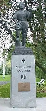 Guillaume Couture (January 14, 1618 – April 4, 1701) was a citizen of New France. During his life he was a lay missionary with the Jesuits, a survivor of torture, a member of an Iroquois council, a translator, a diplomat, a militia captain, and a lay leader among the colonists of the Pointe-Lévy (now named Lévis city) in the Seigneury of Lauzon, a district of New France located on the South Side of Quebec City.
