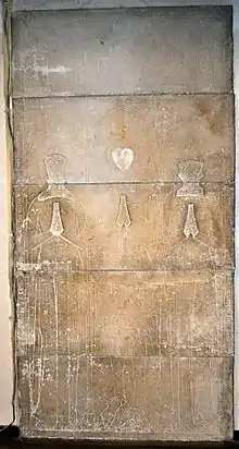 Guillaume Tirel's tombstone is preserved at the church of Église Saint-Léger de Saint-Germain-en-Laye. He was buried in a tombstone created to show him wearing armour and carrying three cooking pots and a shield.[2]