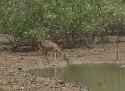 The near threatened blackbuck, considered the flagship species of the park,[9] was introduced in 1924 by Lord Willingdon and has seen a population decline in recent times. It is now known that both Blackbucks and Chitals were a native faunal element of the park.[2] [3] [4] Some albino male blackbucks were also introduced by the Maharaja of Bhavnagar.[5] Per the census conducted on 29 February 2004, the population of Blackbuck was 405 (10 spotted in the IIT campus).[6] The chital population in the Park, appears to have been steady or even increased in the last century.[5] Per the census conducted on 29 February 2004, the population of the spotted deer was 2,650. Of these, 1,743 were female and 336 were fawns. The census was taken in the Guindy National Park and the adjoining areas of the Indian Institute of Technology and the Raj Bhavan campus using King's transect method, which would only reveal the numbers close to the actual figure.