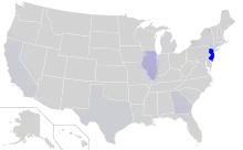 | New Jersey, New York City, San Francisco Bay Area, Los Angeles, Washington, D.C., Chicago, Houston, Philadelphia[4] | |