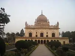 Gulab Bari (lit. 'Garden of Roses') is the Tomb of Nawab Shuja-ud-Daula, located in Ayodhya, Ayodhya district of Uttar Pradesh, India. This place has a good collection of roses of various varieties set by the sides of water fountains. Gulab Bari is the maqbara (Mausoleum) of Nawab Shuja-ud-Daula, the third Nawab of Oudh (now faizabad) in the campus.[1][2] The monument has declared to be of National Importance under the Ancient Monuments and Archaeological Sites and Remains Act 1958 as updated by the Ancient Monuments and Archaeological Sites and Remains (Amendment and Validation) Act, 2010. Further under Sub-section 20 (a) and 20 (b) of Ancient Monuments and Archaeological Monuments and Remains (Amendment and Validation) Act, 2010.