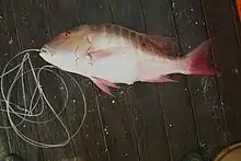 On the western border of the Gulf of Cazones, a stretch of 48 kilometres (30 mi) forms the head of Cayo Sigua and Cayo Blanco. In this stretch, with vertical cliffs, there are diving locations where the depth of the sea varies from 15 m to 200m. At these diving locations, coral fish and large tubular sponges, sea fans and coral colonies are reported.[5] Lane snappers (Lutjanus analis) spawn at the edge of the gulf.[6]