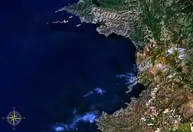 The Gulf of Papagayo (Spanish: Golfo del Papagayo, meaning "gulf of the parrot") is a large body of water off Guanacaste province and the northwestern coast of Costa Rica. The Gulf and its coastline are part of a major tourism project by Costa Rica's government. Among the most popular destinations on the Gulf of Papagayo are Ocotal Beach, Playas del Coco, Playa Hermosa, and Playa Panama. The Papagayo peninsula is the most developed area in the gulf region. The gulf waters are home to many wildlife including orcas.[1]