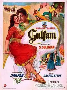 Gulfam is a Pakistani costume film directed by S. Suleman in his directorial debut. It was produced by Darpan under his production banner Darpan Productions, who also played the leading role alongside Musarrat Nazir. The supporting actors include Nazar, S. Suleman and Talish. The music was composed by Rashid Attre with lyrics by Habib Jalib and Tanvir Naqvi.[1] The film received a Nigar Award for best editing.[2]