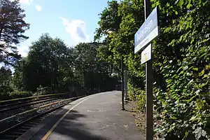 Gulleråsen lies in a tight 80 m radius curve, and there was a snag when the line was upgraded to handle MX3000 trains. When the line was tested with the new stock, it was found that the gap between the inbound platform edge and train door was 54 cm, this is unacceptably wide for safety reasons. As a result, the station is only served by outbound trains.[2] From 12 January 2011, a replacement bus between Gulleråsen and Slemdal 750 metres away was implemented following pressure from residents. The bus has been criticized for low passenger numbers and each passenger is subsidized with about NOK 300. A possible resolution is to only open the last door in the trainset, but this requires modifications to the MX3000.[3]