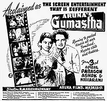 Gumastha (transl. Clerk) is a 1953 Tamil language film starring V. Nagayya, R. S. Manohar and Pandari Bai. The film was produced in Tamil and Telugu under the same title.[1][2]
